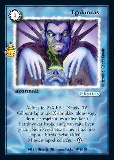Áldozz fel 2*X ÉP-t (X max. 3)! Célpont lapra rakj X elmúlás-, álom- vagy dermesztésjelzőt, és a következő hátrányokat kapja, amíg van rajta ilyen jelző: „Nem kereshetsz és nem húzhatsz lapot a húzás fázison kívül. Minden lapod költsége +1_VP.”
